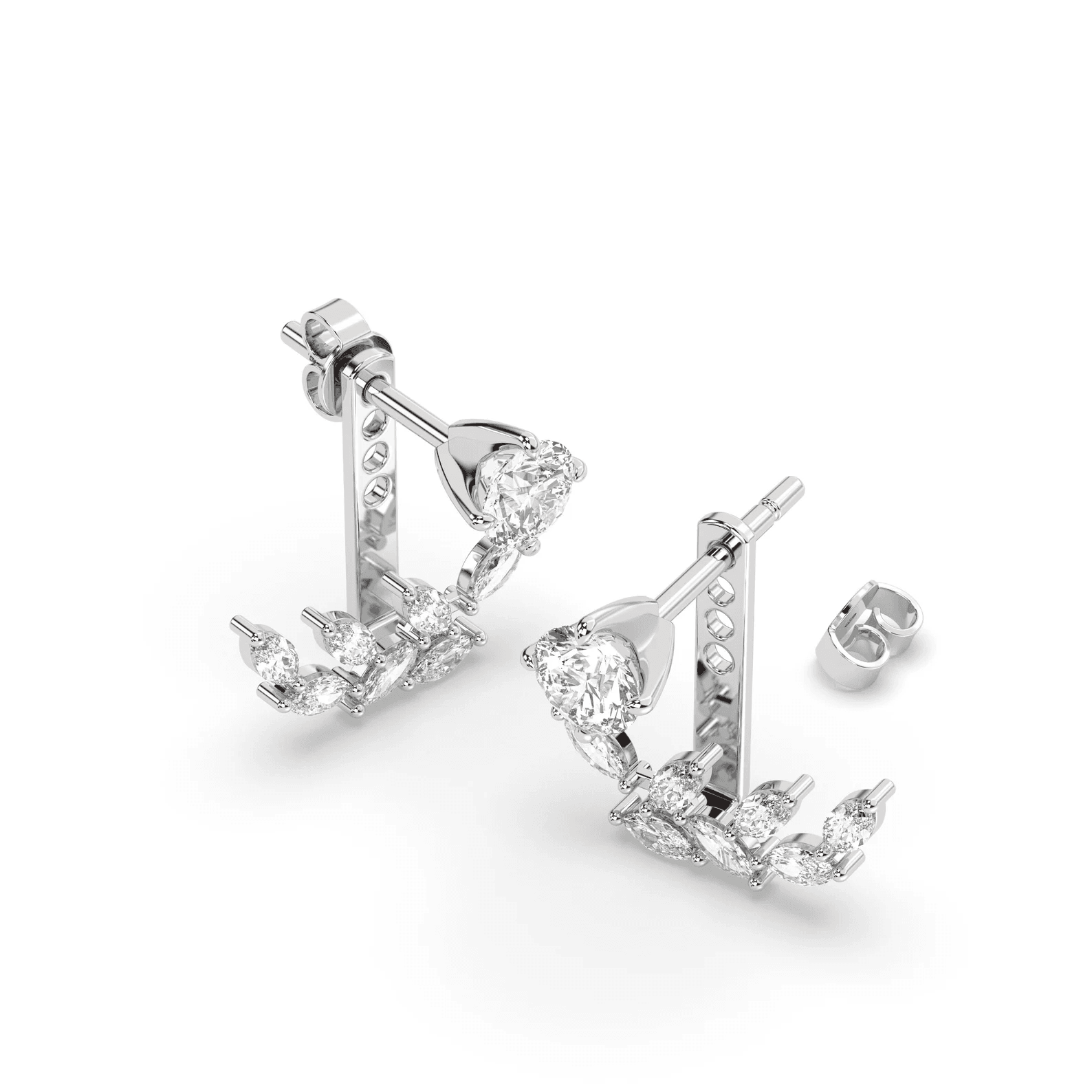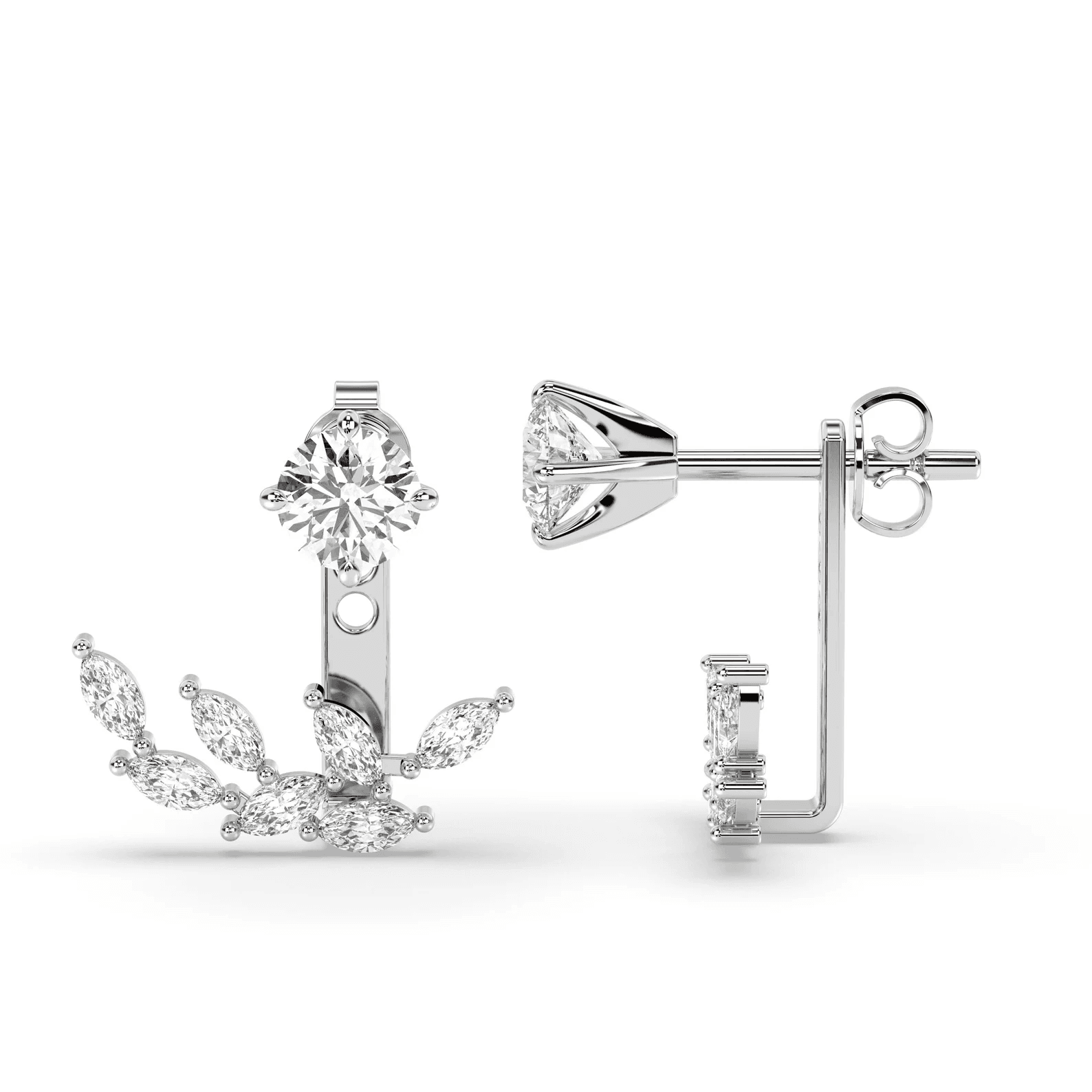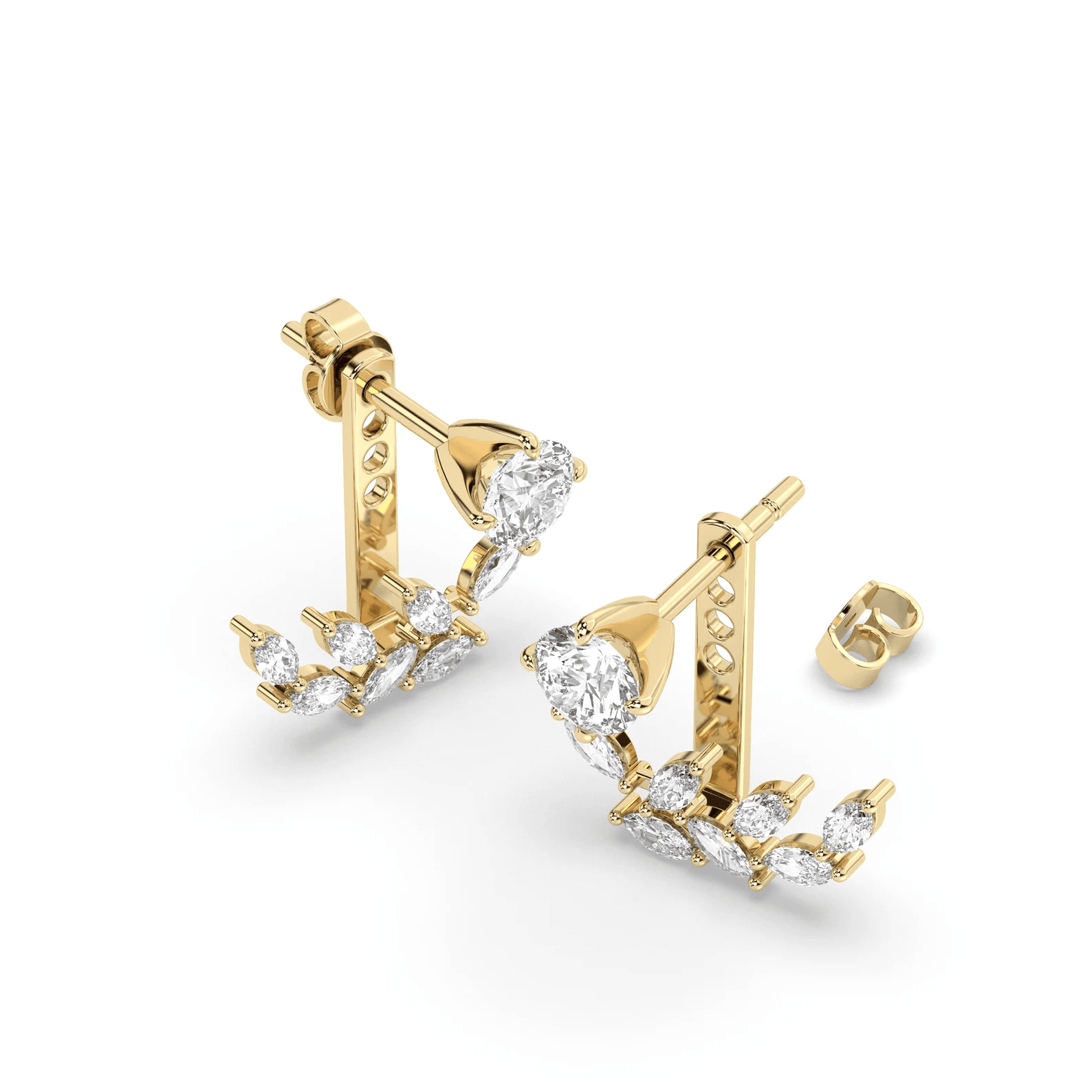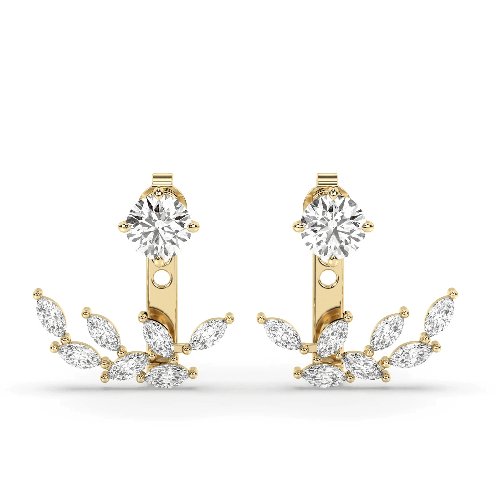 14k Gold Ear Jacket Earrings, Yellow Gold Leaf Front Back Jacket Earrings, Lab Grown Ear Round Diamond, Marquise Cut Diamond Earrings, Push Back Closure Earrings, Wedding Bride Earrings, Bridesmaid Gift For Her, Best Friend Gift, Two Diamond Earrings, Valentine Day Gift For Gf