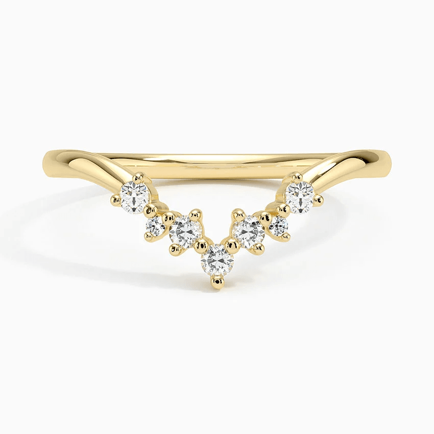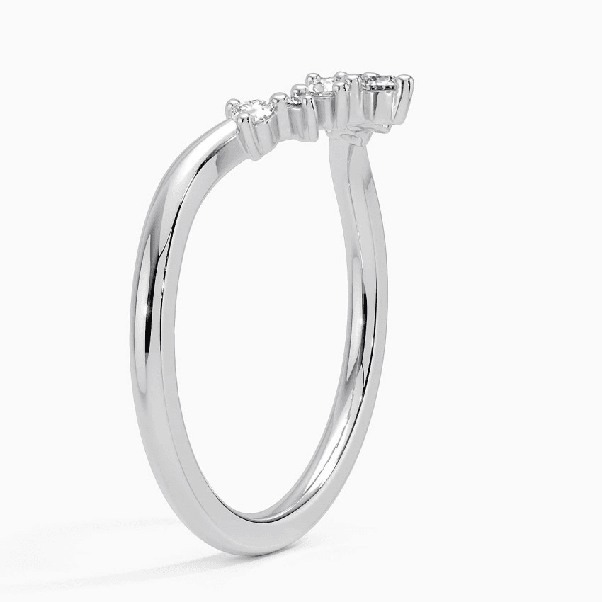 A stream of glistening offset diamonds meet at a point in this captivating ring, perfectly styled to encircle an engagement ring in an aura of light (1/10 total carat weight).