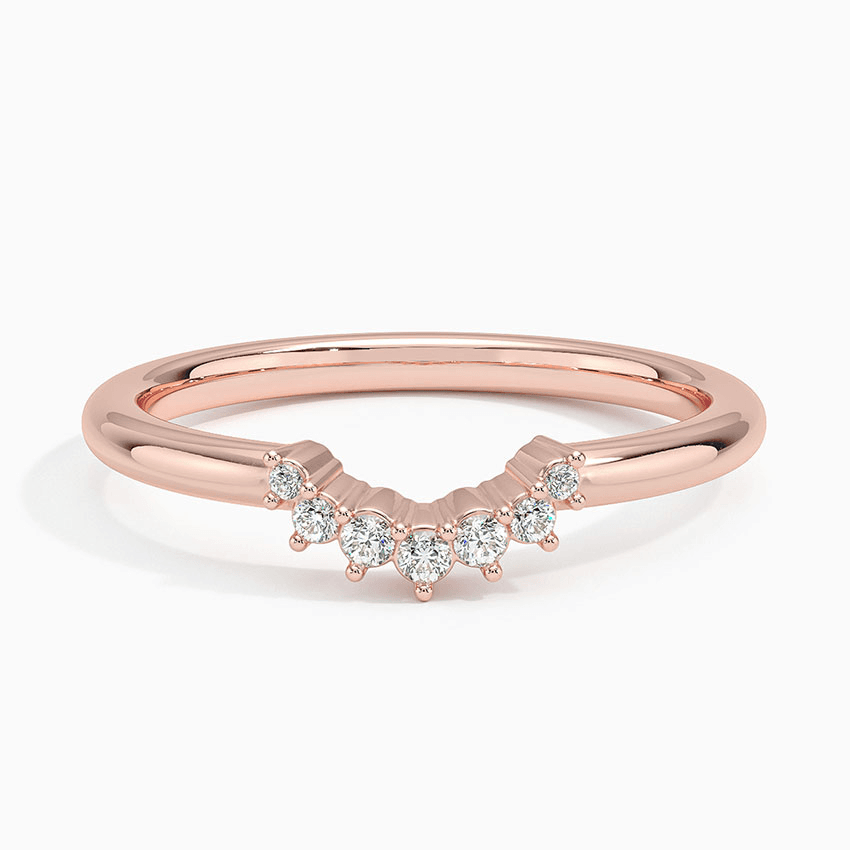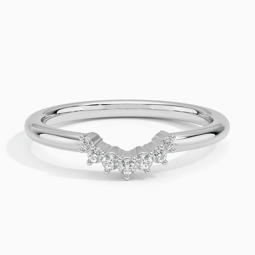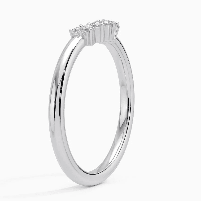 Sparkling diamonds adorn this sleek crescent shaped ring which is perfectly styled to complement an engagement ring, stack with other rings, or wear by itself (1/15 total carat weight).