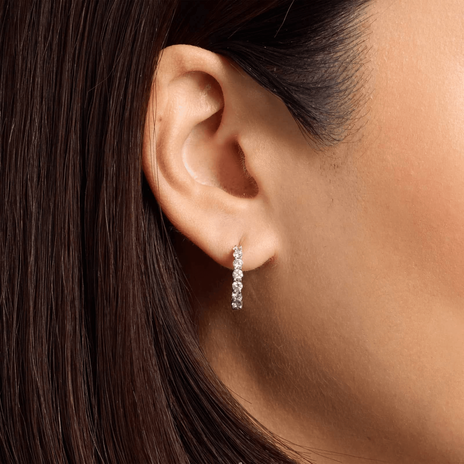Crafted from premium 18-karat white gold, the cool, reflective metal serves as the ideal setting, enhancing the brilliance and clarity of each stone. With a total diamond weight in the range of 1.3 to 4 carats (depending on variant), these hoops deliver serious impact while maintaining a sophisticated profile that suits both grand occasions and elevated daily wear.