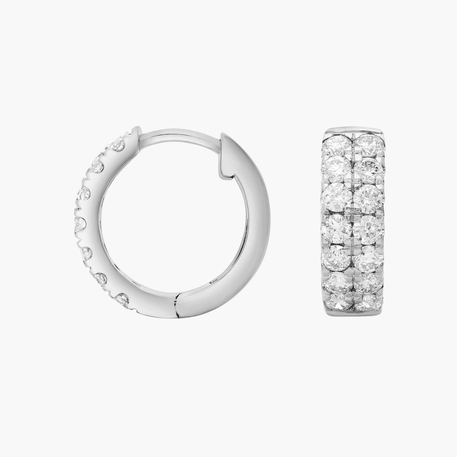 For the discerning connoisseur of fine jewelry, these Double-Row Diamond Huggie Hoop Earrings present a bold yet refined statement. Each hoop is fashioned in premium 14K white gold, offering a cool, lustrous palette that enhances the brilliance of the stones. Two meticulously aligned rows of shimmering diamonds encircle the hoop—creating continuous movement and light that captivates from every angle.