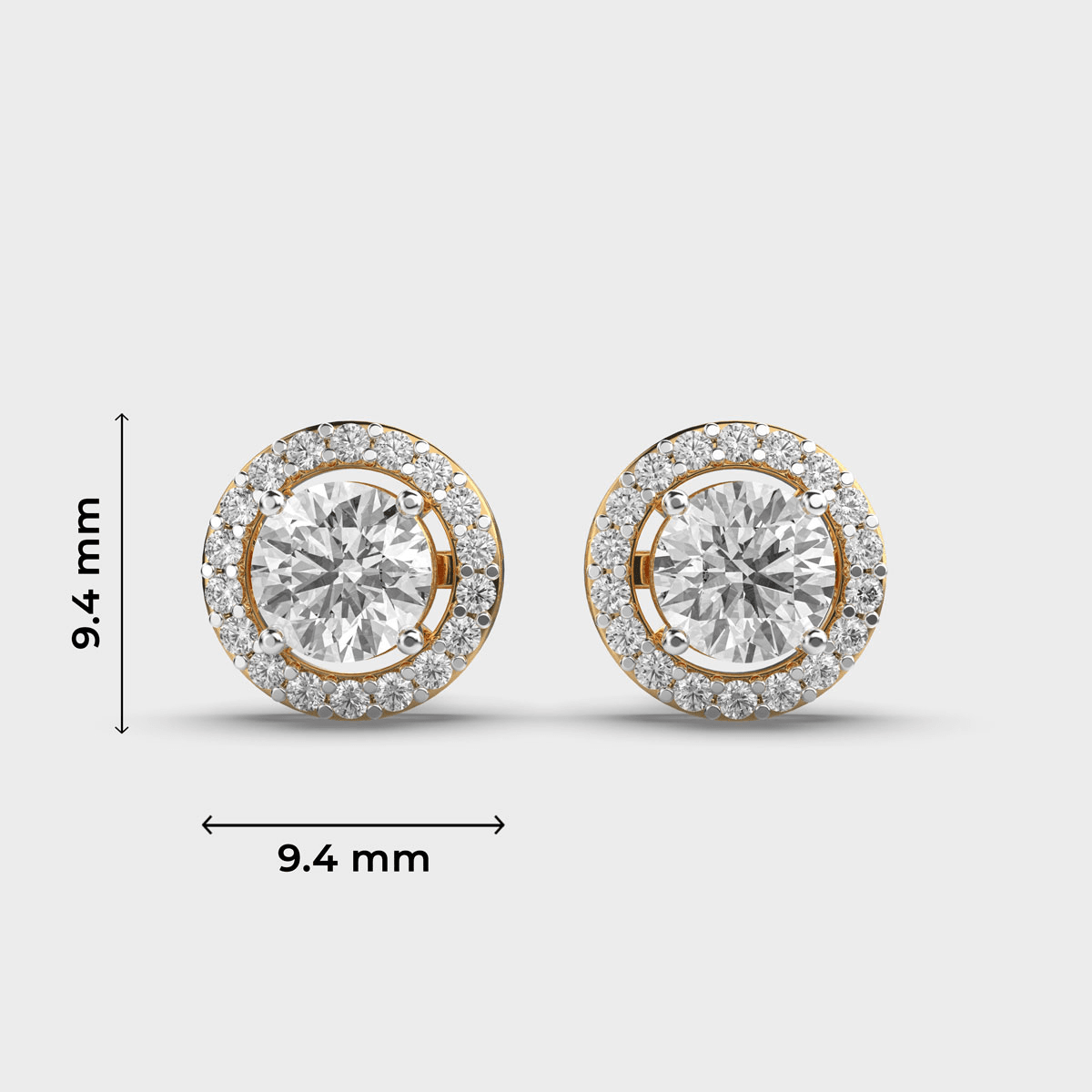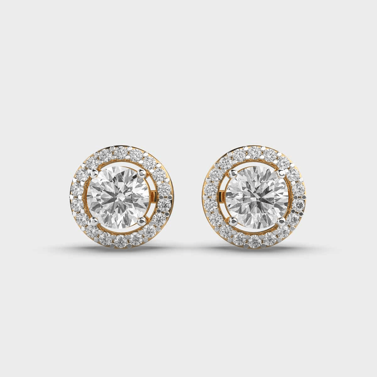 The Elegant Halo Round Diamond Earstuds are a celebration of refined craftsmanship and timeless allure. Each earring features a brilliant round-cut diamond surrounded by a shimmering halo of smaller diamonds, enhancing the center stone’s natural brilliance.