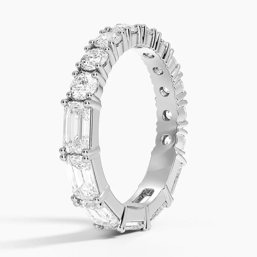 Be the first to review “Elise Emerald Cut and Round Eternity Diamond Ring in 18K White Gold”
