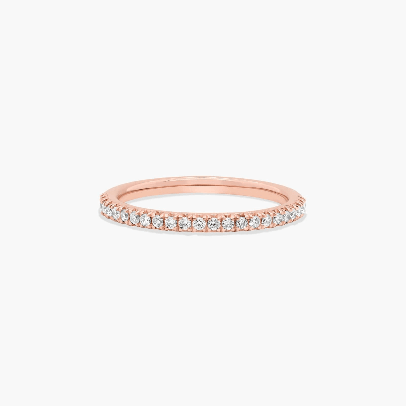 This French pavé lab-grown diamond wedding ring is created to maximize the amount of light that hits the lab-grown diamonds from all sides, increasing their individual sparkle.
