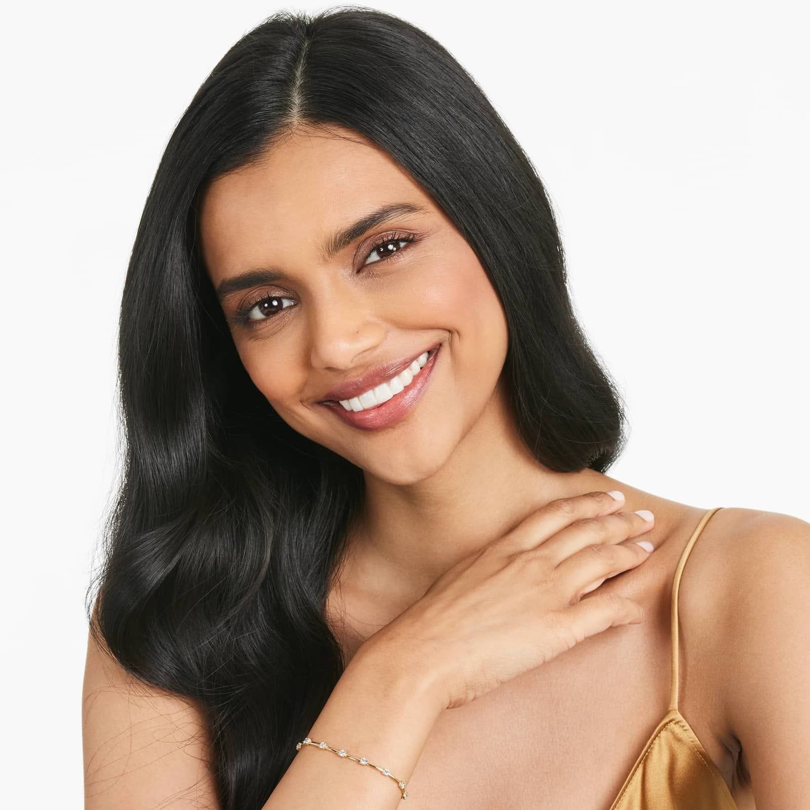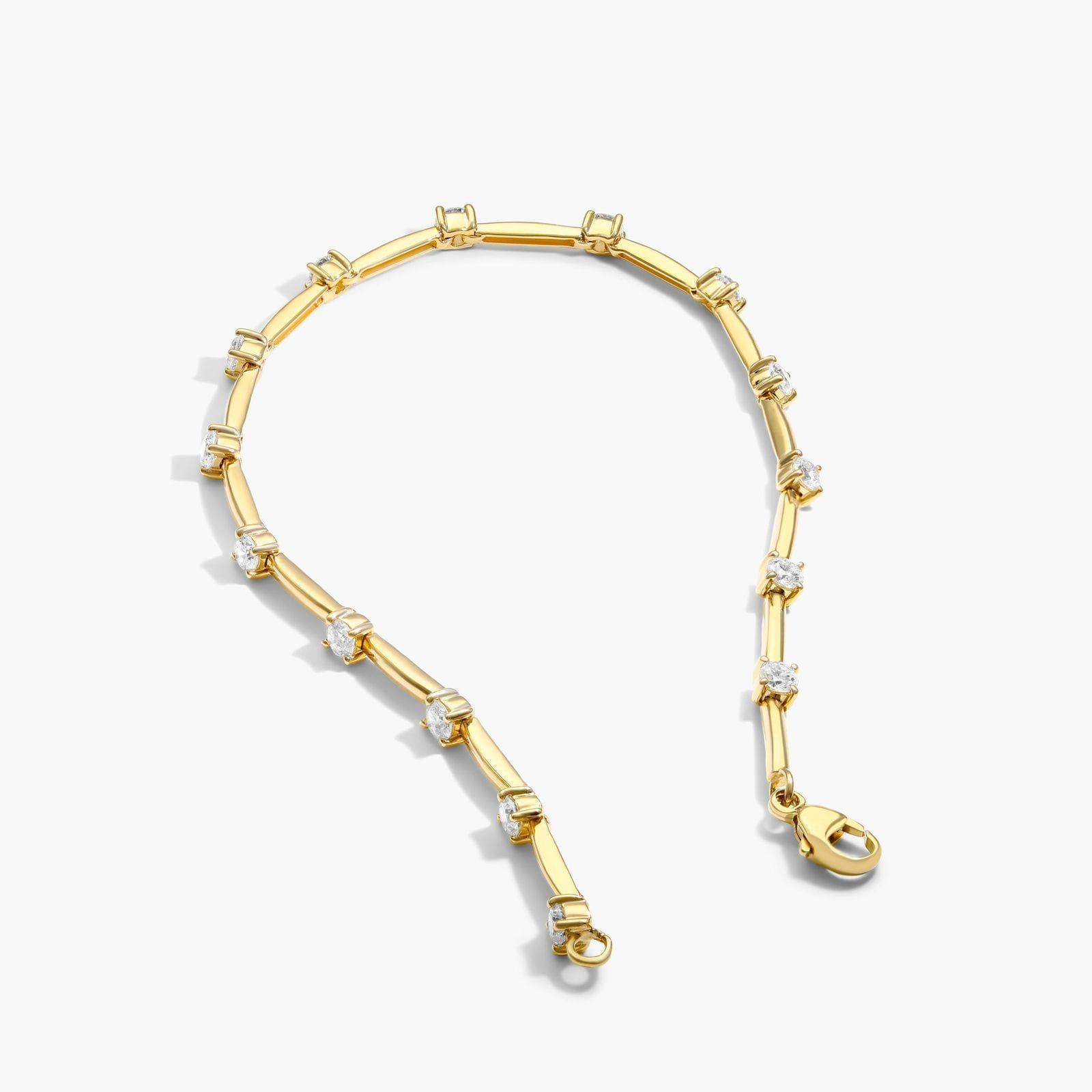 Just a hint of subtle sparkle, this fashion bracelet suits her feminine yet bold style. Crafted in 14K gold, this clever design pairs gracefully polished bar links with Lab-Grown diamond stations in a look that captures the eye. This modern bracelet secures with a pear shaped lobster clasp.